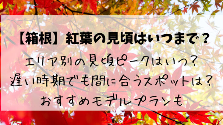 気になる家電・用品箱根の紅葉はいつまで見頃?エリア別のピークと遅い時期も間に合うスポット 「今年こそ、箱根の紅葉を見に行きたい!」 そう思い立ったとき、まず気になるのが「いつまで紅葉が見頃なのか」ということではないでしょうか。箱根は標高差が大きく、エリアによって紅葉のピークが異なります。そのため、「もう遅いかな?」と思って... 2025.10.13気になる家電・用品